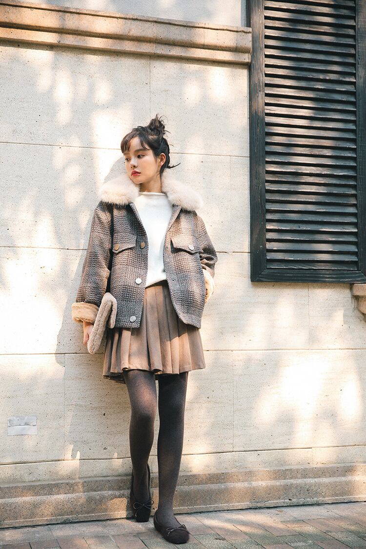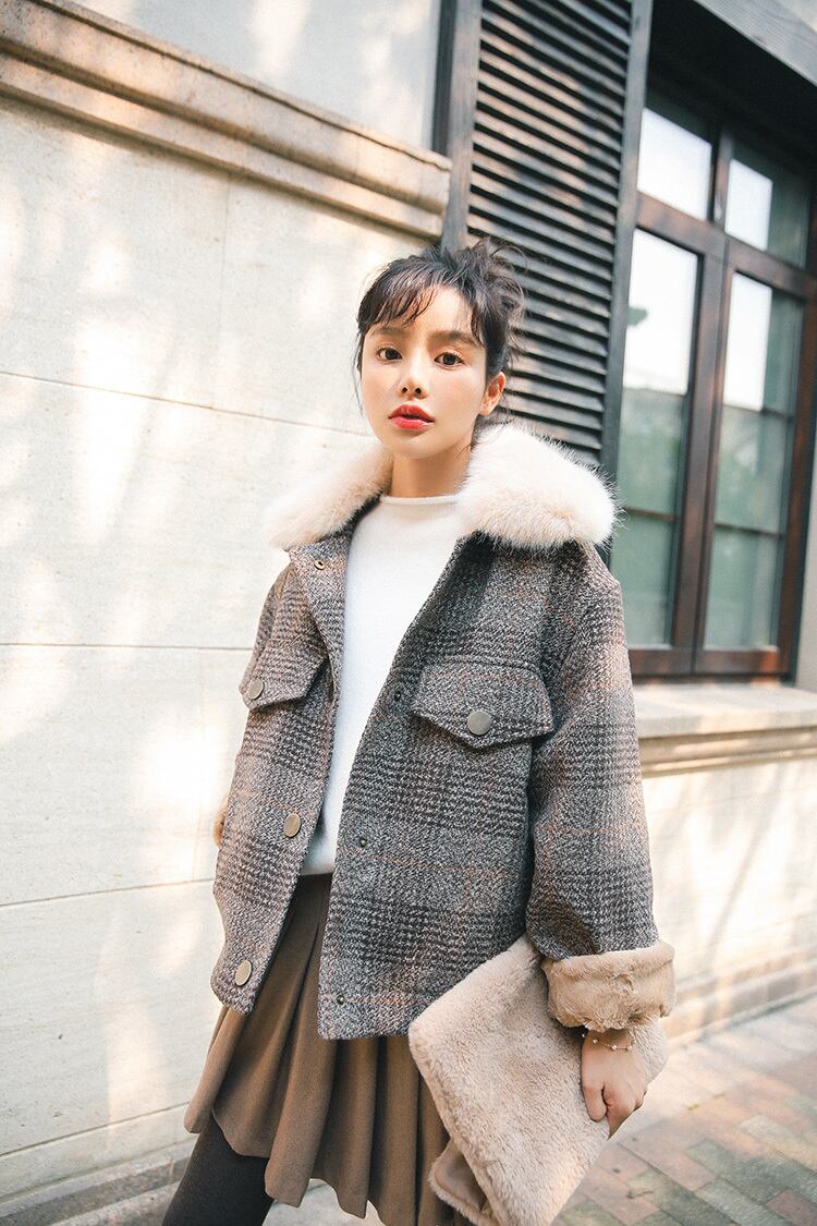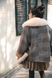 落ち着いた色合いで大人っぽい雰囲気のショート丈ウールコートです。