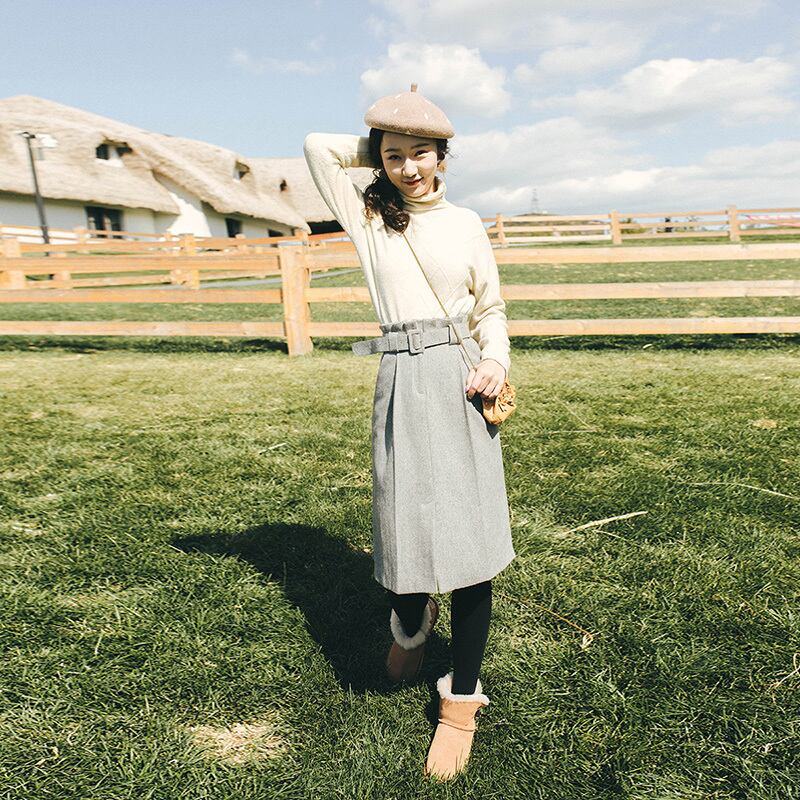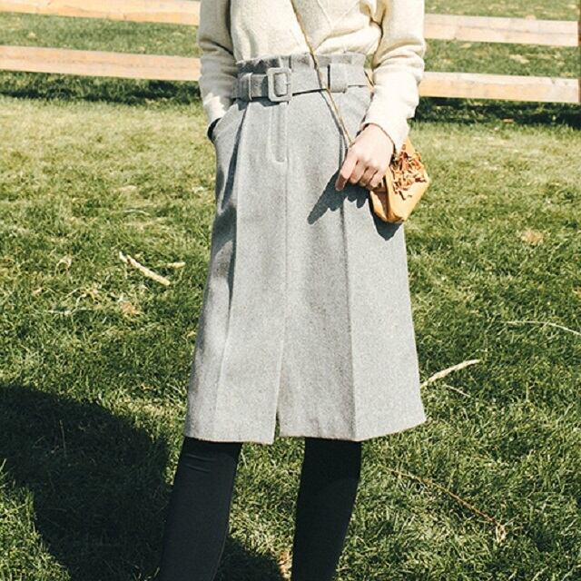 ハイウエストでスタイル良く、美脚効果も期待できる大人きれいな膝下丈スカート。