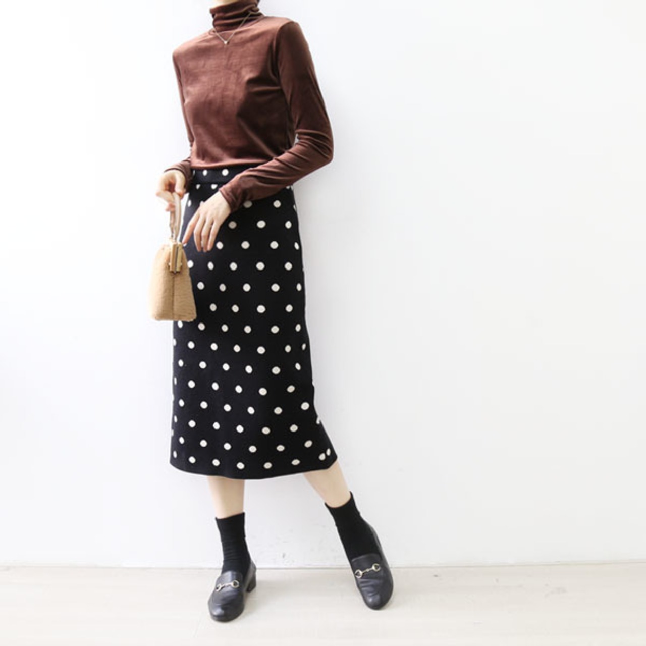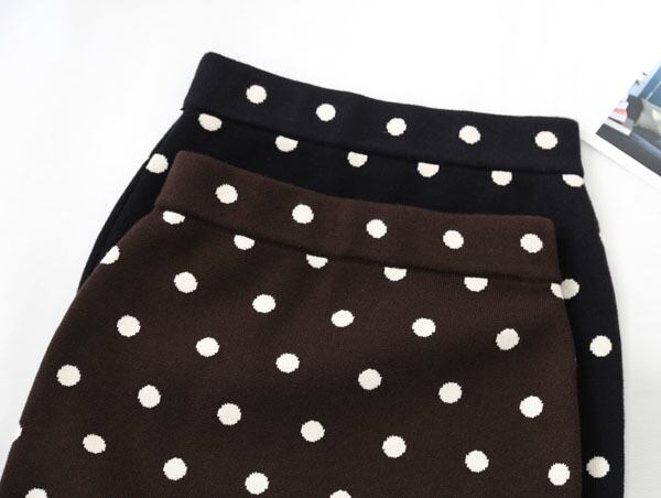 秋冬トレンドのトラッドスタイルにピッタリなきれいめドット柄スカート。