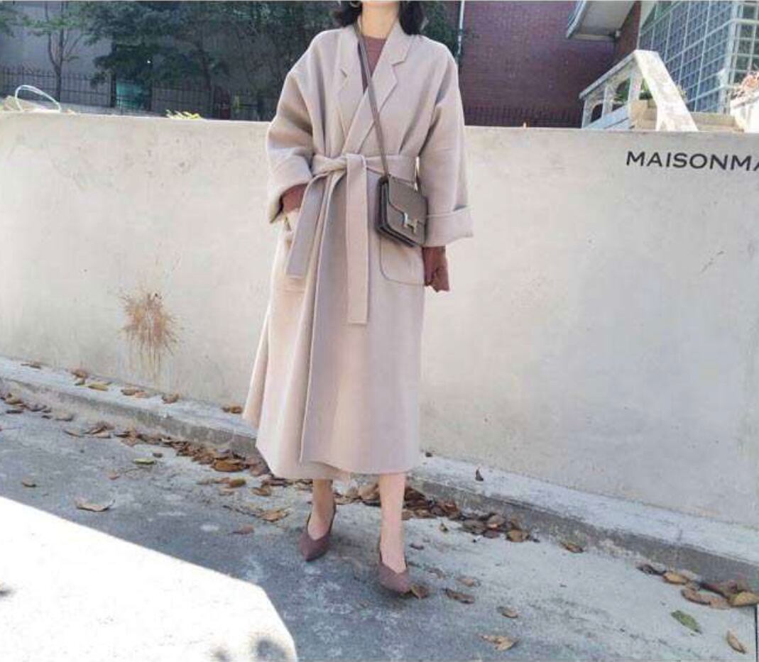 開けてきても締めてウエストマークしてもスタイリッシュにコーディネートできるコートです。