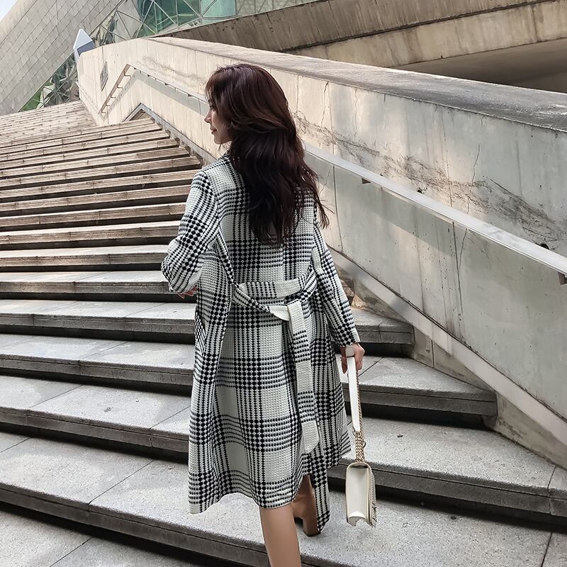 トレンドライクなチェック柄が人気のミドル丈コート。