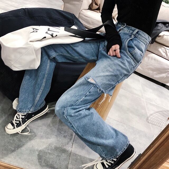 USED感のあるクラッシュや裾のほつれがカジュアルなスタイリングにマッチするかっこ可愛いデニムパンツ。