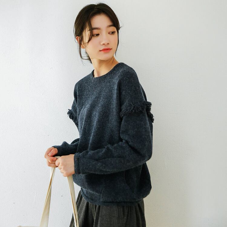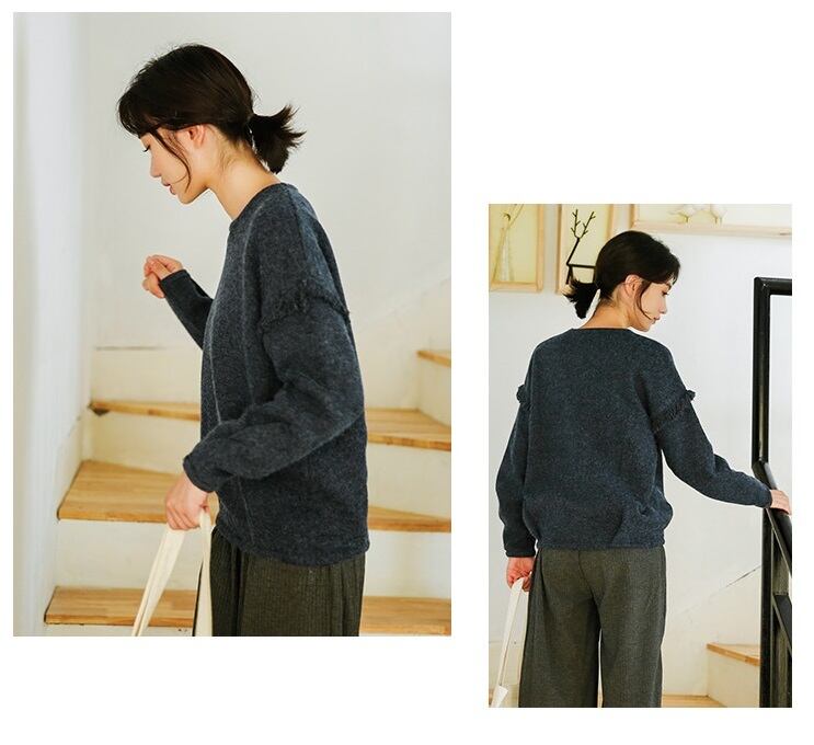袖部分はフリンジがあしらわれ、シンプルな中にもディテールにこだわった1枚となっております。