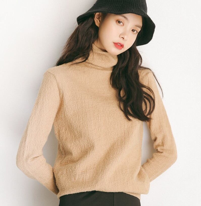 秋冬に重宝するタートルネックニットトップス。