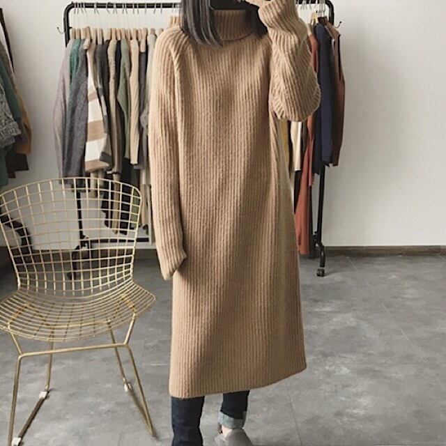 リブ編みでストレートなデザインなので、スタイル良くすらっとした印象に仕上がります。