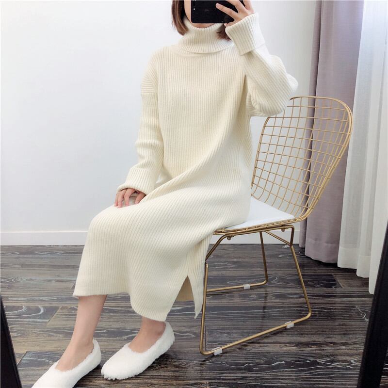 デイリーに使いやすいシンプルなニットロングワンピース。