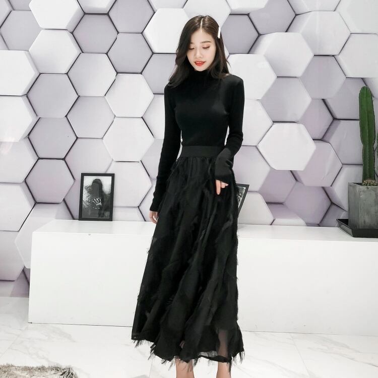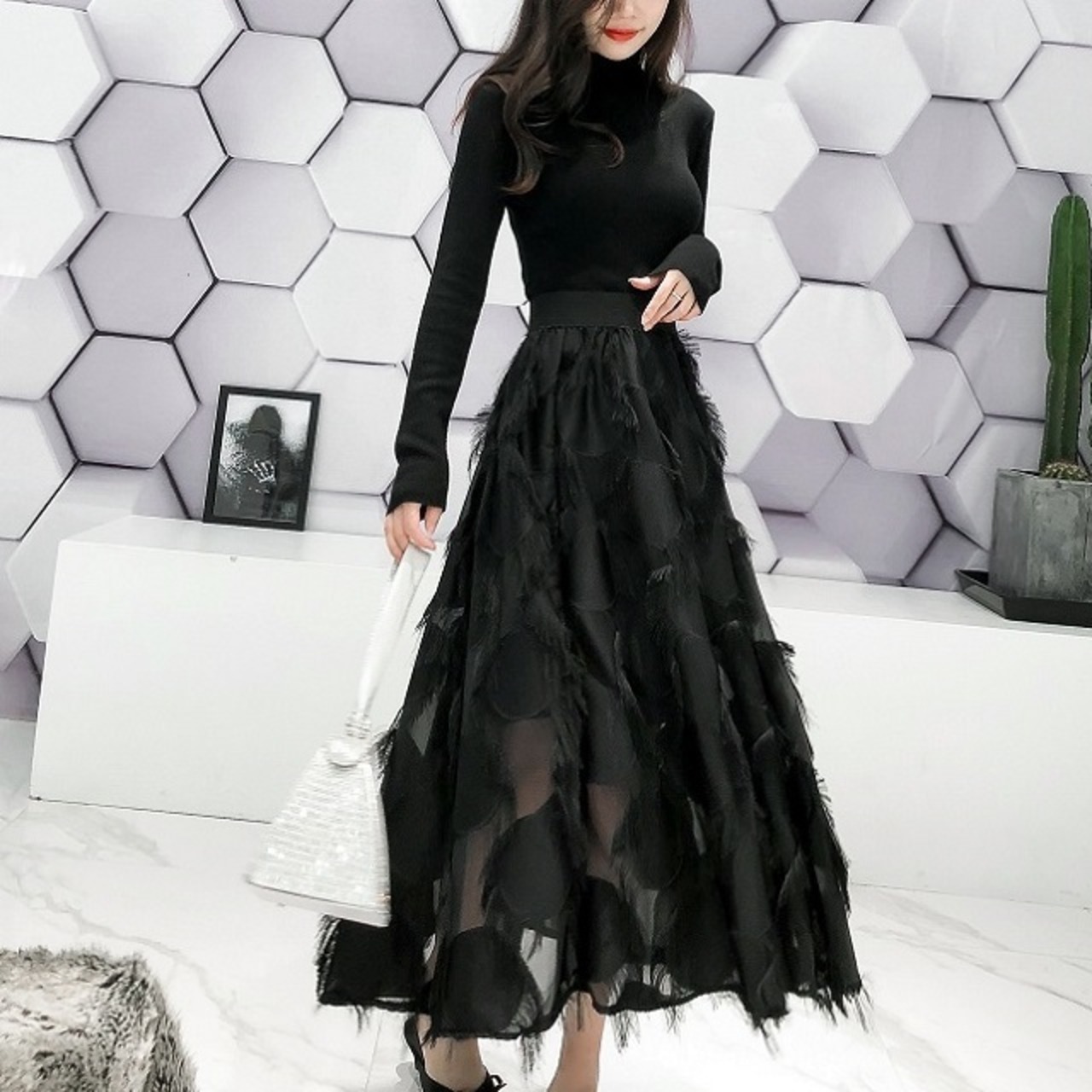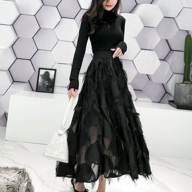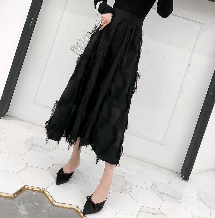 オールブラックカラーでフェミニンな印象のロング丈スカートです★