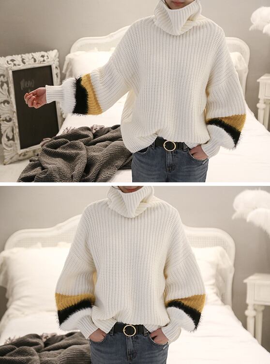 袖にカラーファーのアクセント。