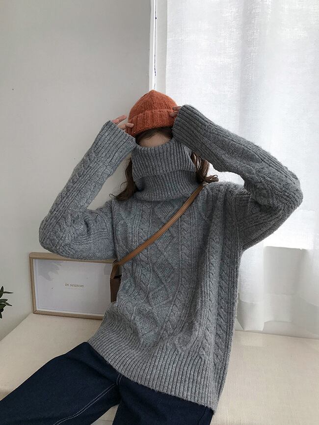 おすすめ 新作 ニットトップス レディース タートルネック 長袖 ケーブル編み 無地 ゆったり 秋冬 ct0220