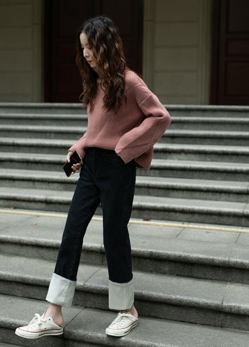 流行のオーバーサイズデザインで、体型カバーをしながらおしゃれもでき、ハイネックでしっかりと暖かいセーターです。