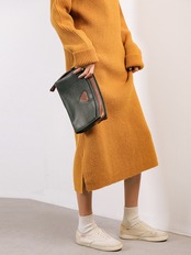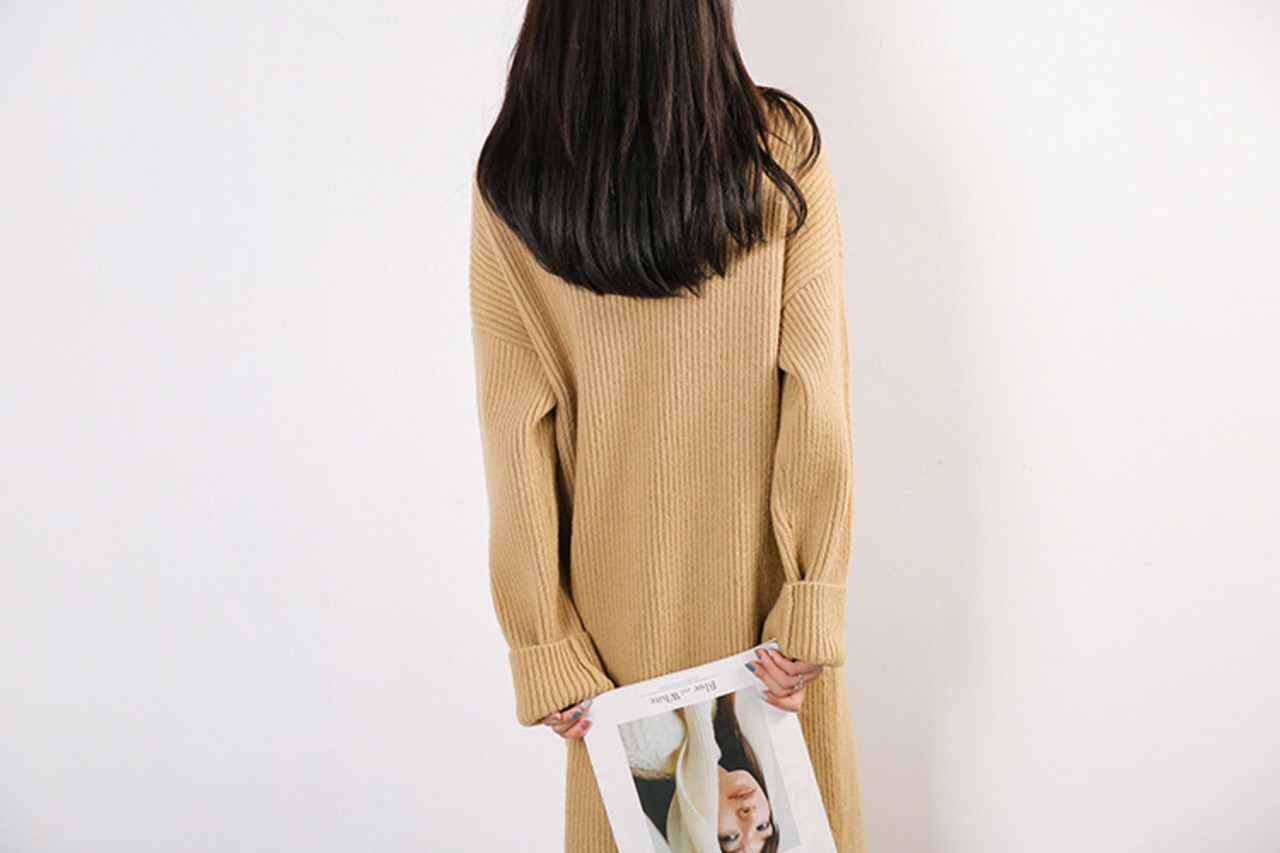 シンプルでで落ち着いた雰囲気のタートルネックニットワンピースです。