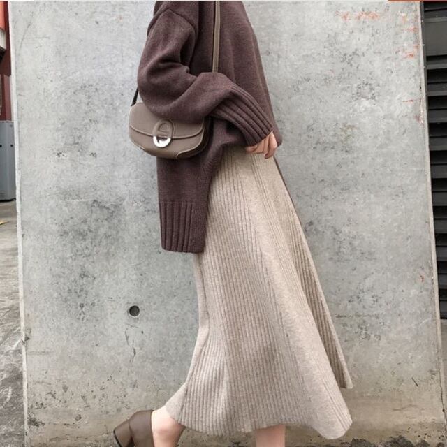 ふんわりとしたAラインのシルエットがフェミニンなニットスカート♪