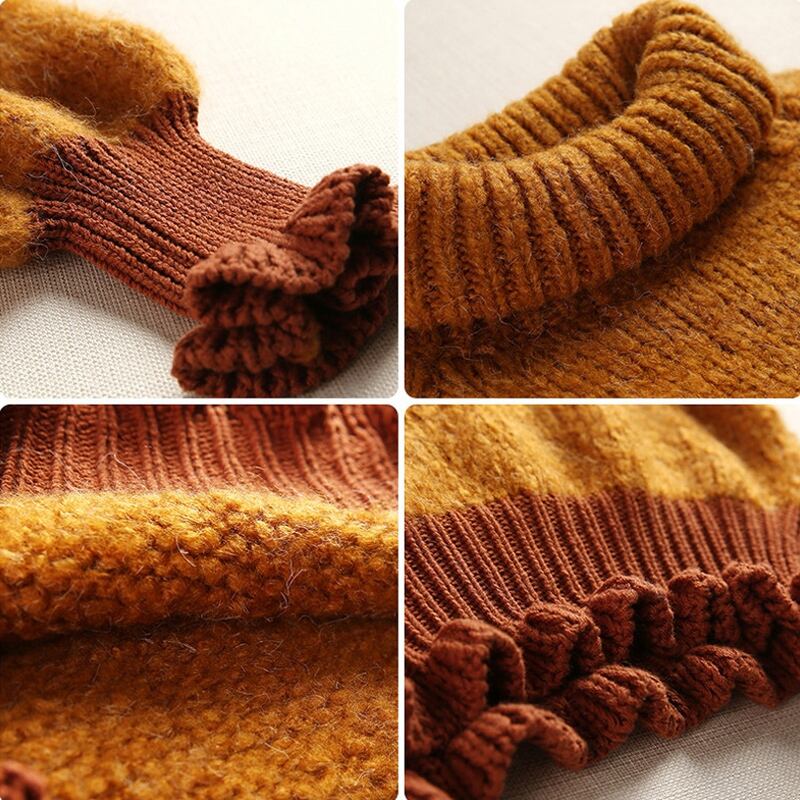 袖と裾がフリル♡になっていてキュートですが、大人色で落ち着いたスタイリングができるニット。大人可愛いが叶います。