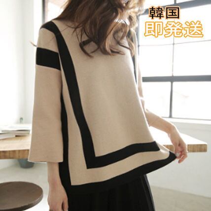 5分丈なので厚手のコートの下にも着やすく、春先まで使えるニット。
