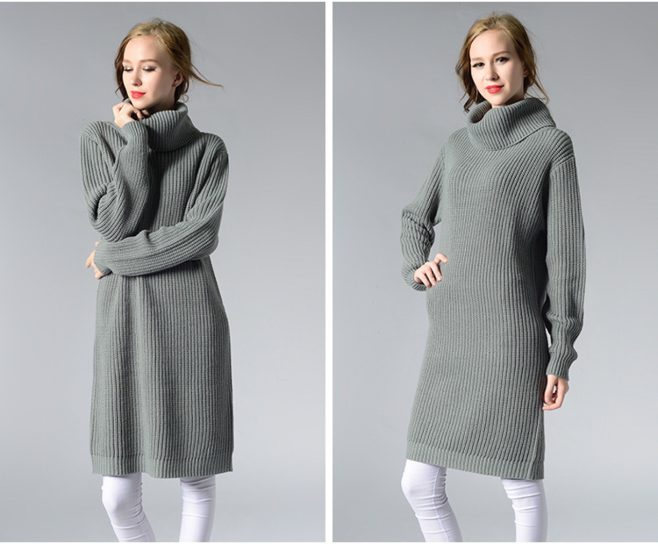 シンプルなデザインのハイネックニット
