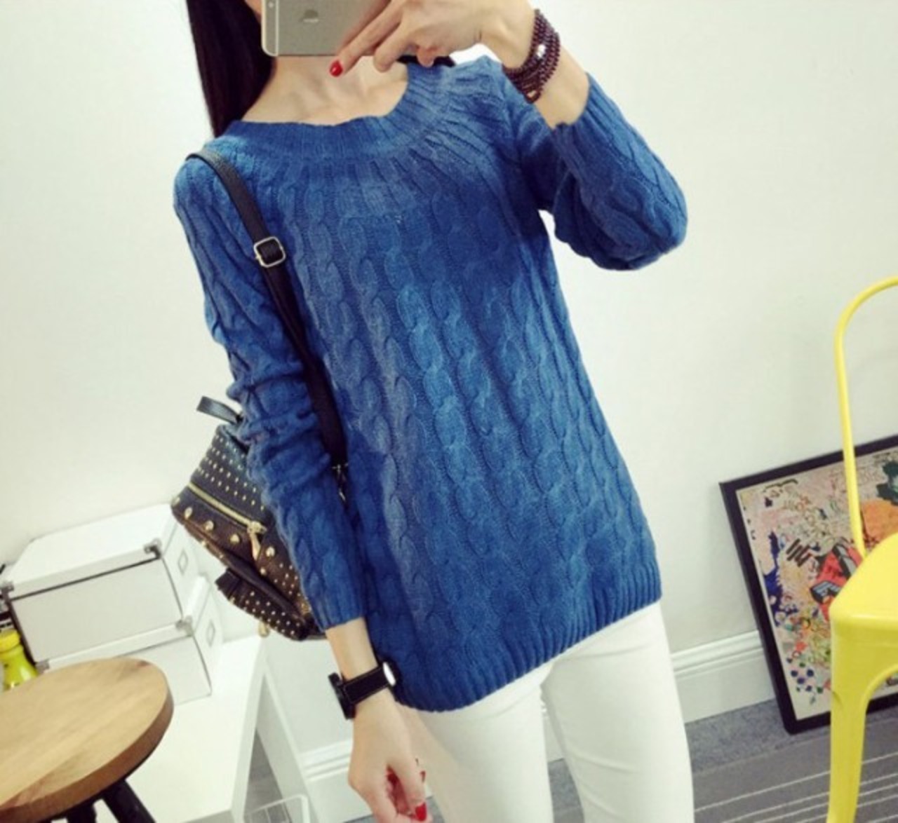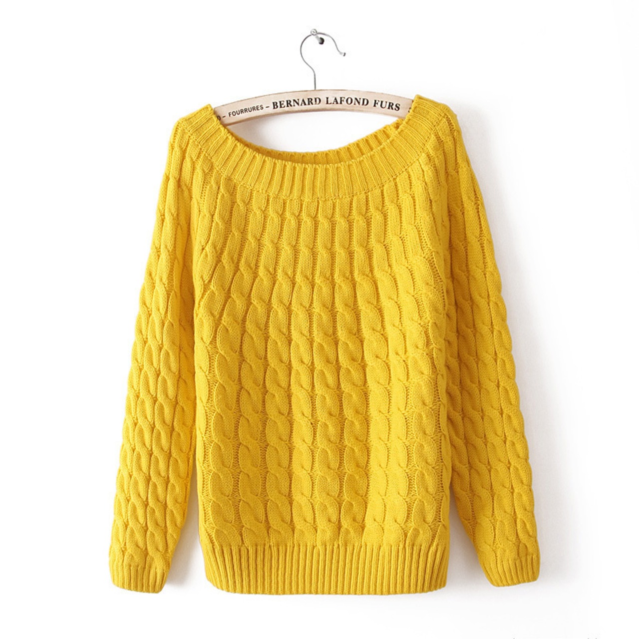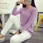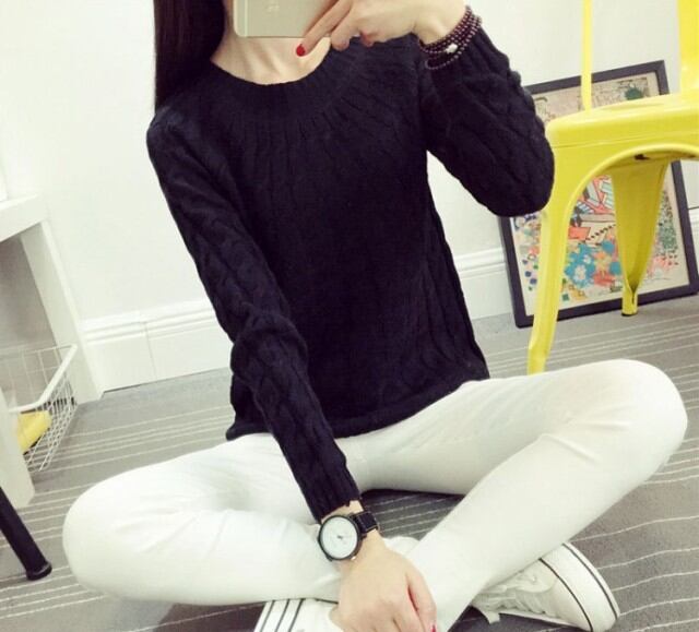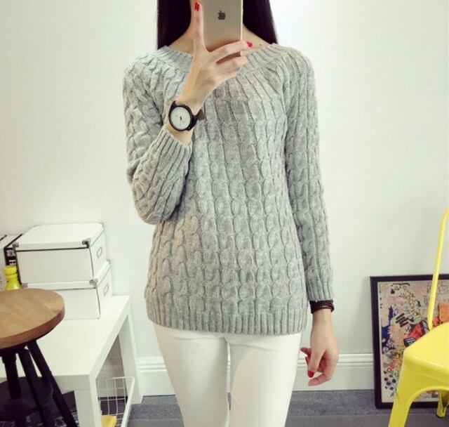 トレンドのケーブルニット!首周りがゆったりしていて薄手、フィット感のある細身ニットです。