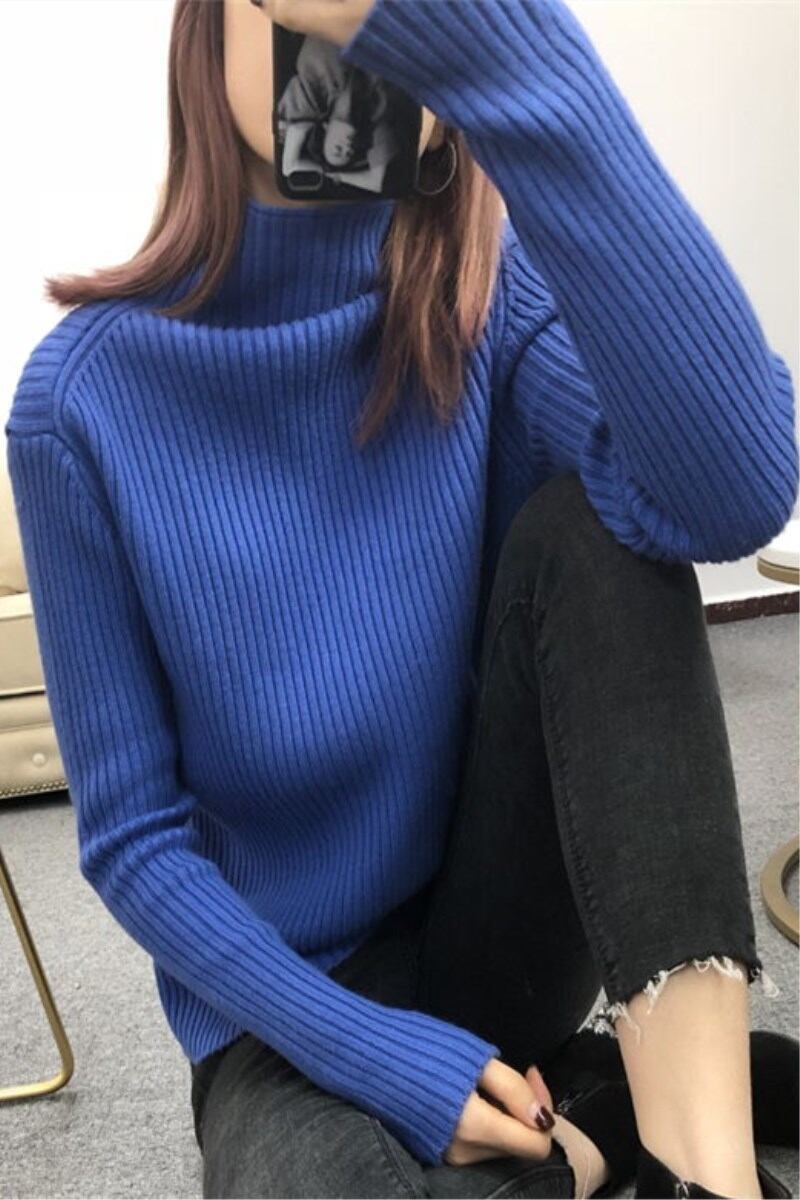 タートルネックなので、顔周りもスッキリ、袖が少し長めの作りになっています。