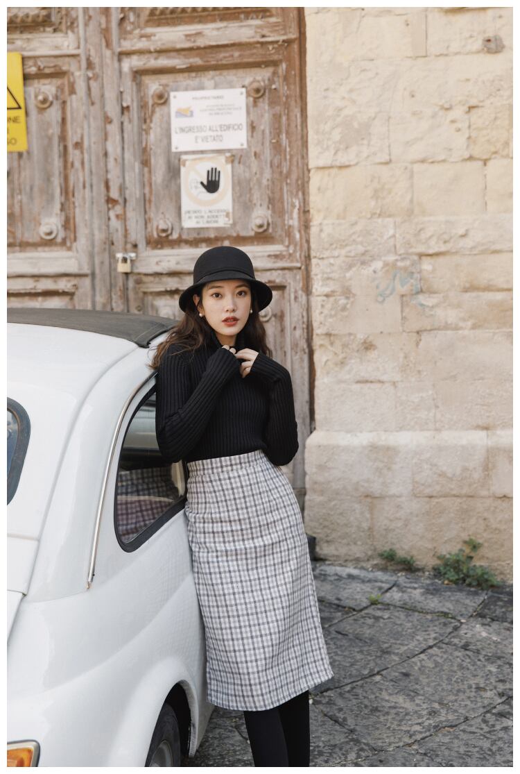 ハイウエストでスタイル良く、可愛らしいチェック柄がトレンド感たっぷり☆