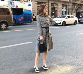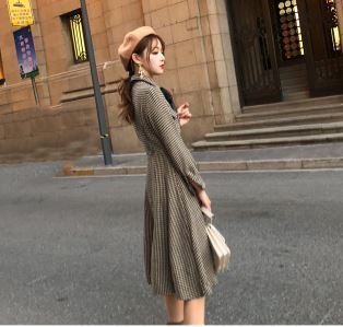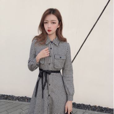 レトロ感のあるチェック柄にリボンがワンポイントとなったきれいめ膝下丈ワンピース。