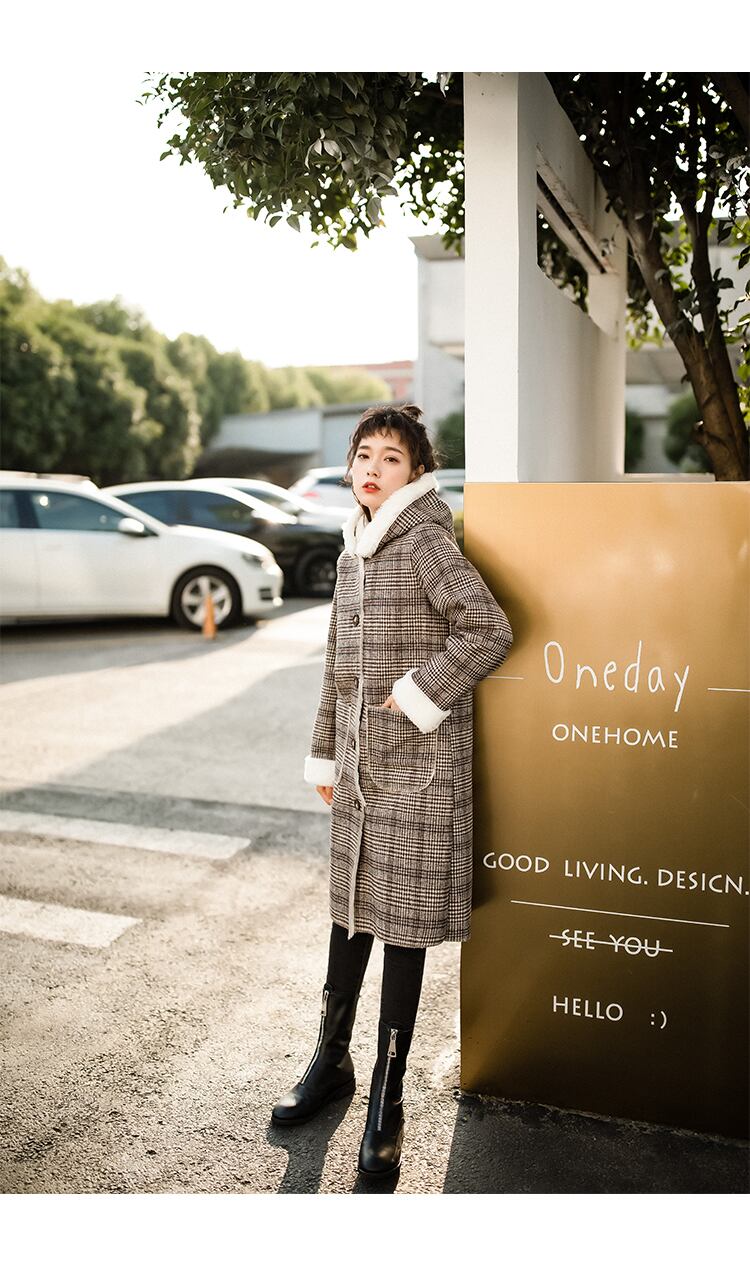 今年のトレンド、グレンチェックがレトロキュートなデザインのロングコートです。