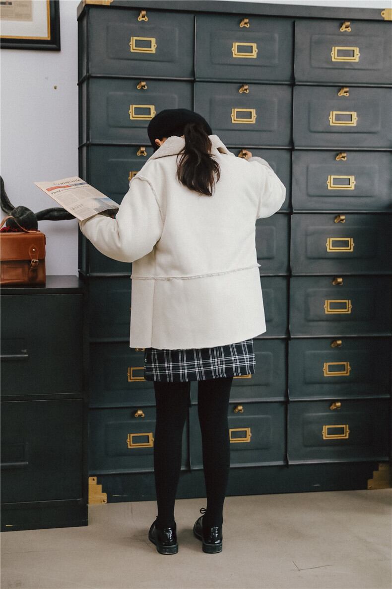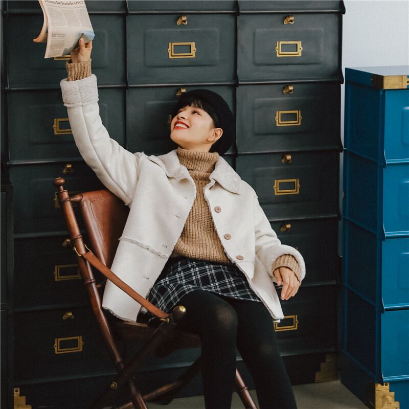 ざっくりと羽織って、ネックウォーマーやストールなどの小物をプラスしても可愛いですよ。