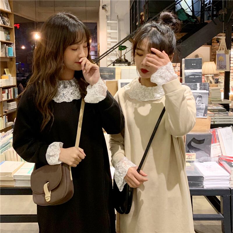 レースをあしらったレトロな雰囲気のきれいめワンピース☆