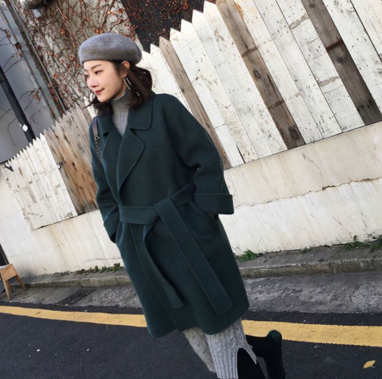 ゆったりとしたシルエットと落ち着いたモスグリーンが大人可愛いミドル丈コート☆