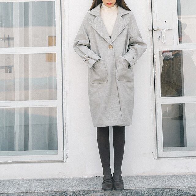 上品なヘリンボーンで、オンにもオフにもマッチするロング丈コートです◎