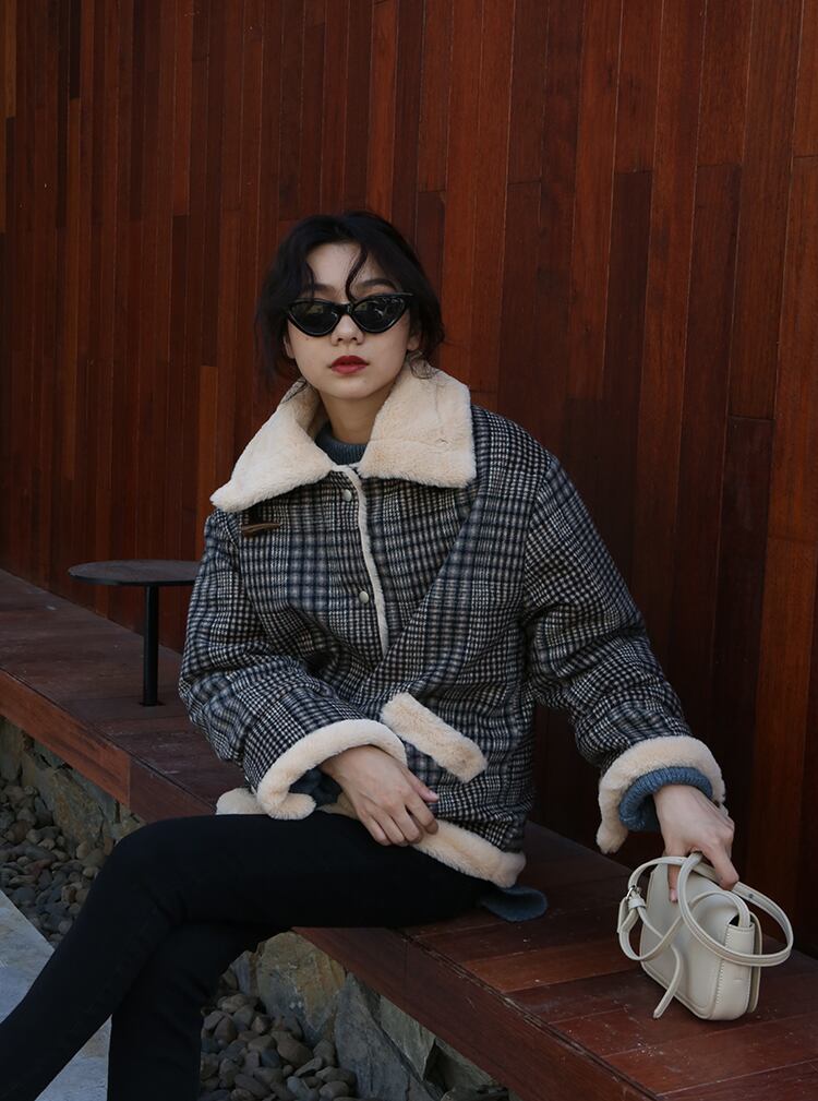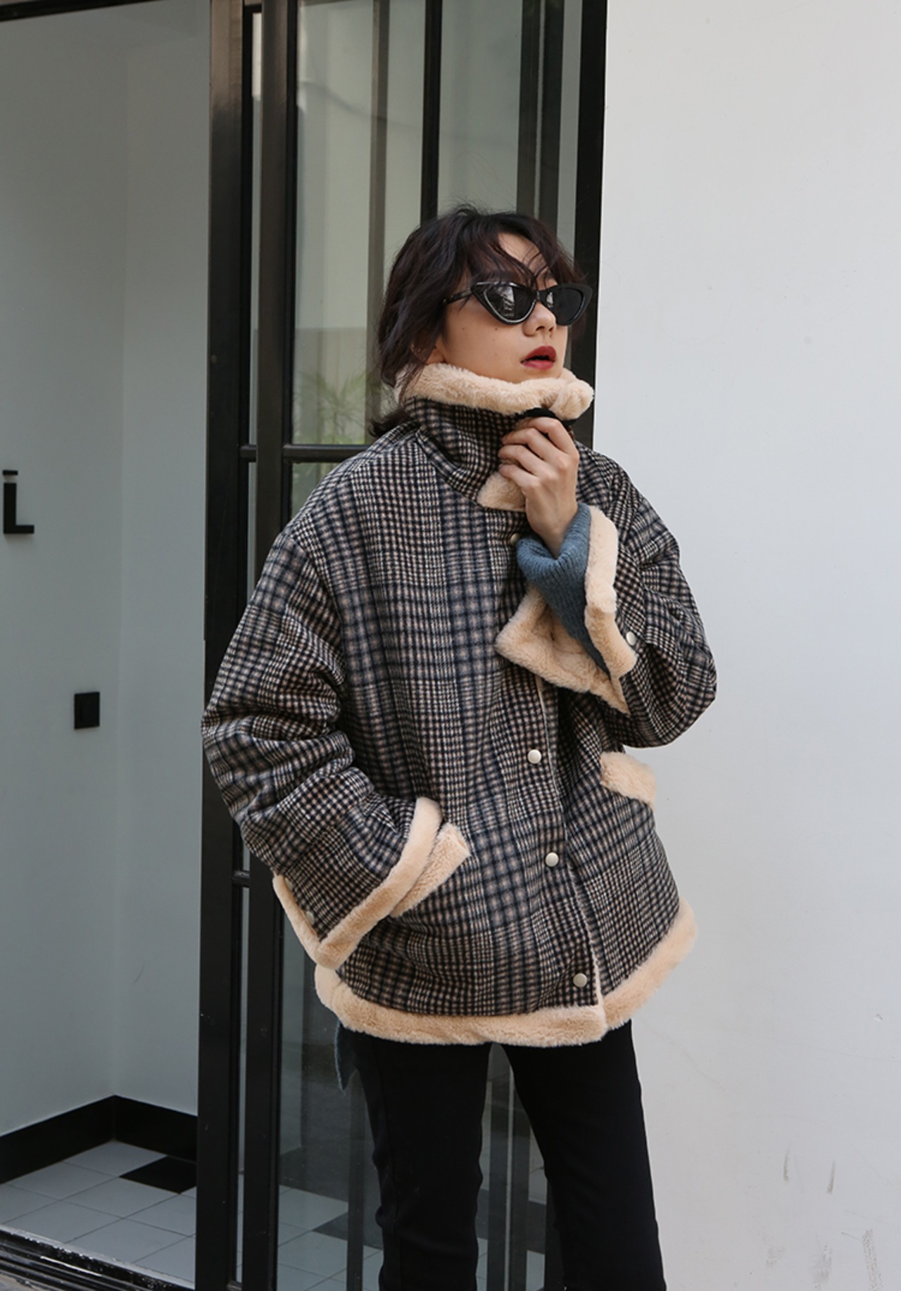 ハイネックデザインで暖かさをキープしてくれる、ふわもこジャケットです。