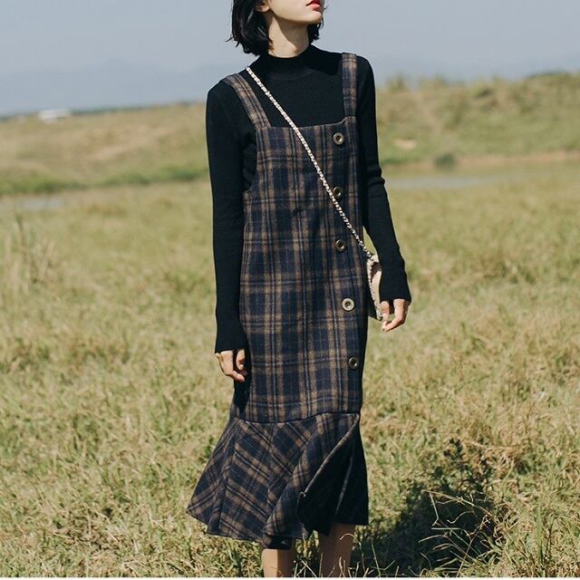 インナー次第でロングシーズン愛用頂ける、ジャンパースカートです◎