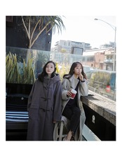少し長めの着丈にオーバーサイズがトレンドライクで、トグル部分をブラックで仕上げてきちんと感もプラス☆