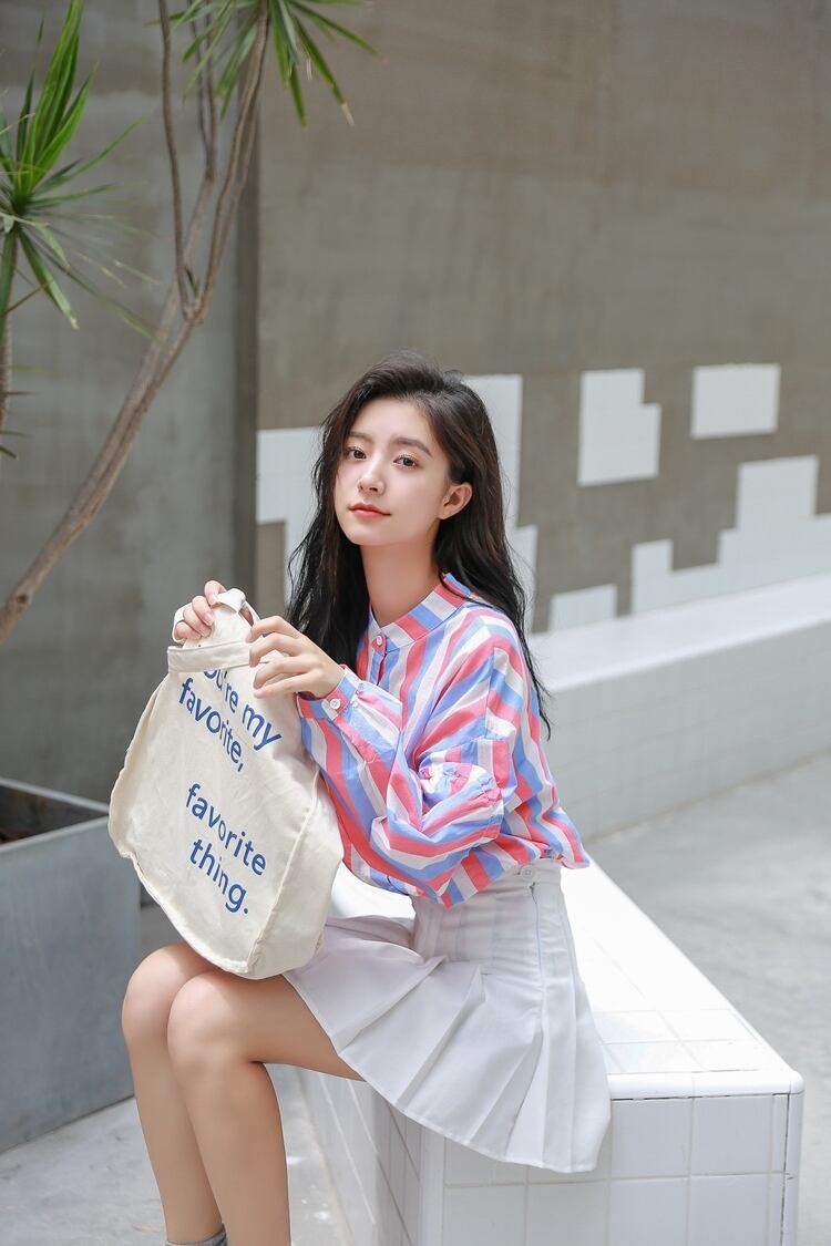 春らしい配色のマルチストライプがトレンドのバンドカラーシャツのご紹介です。