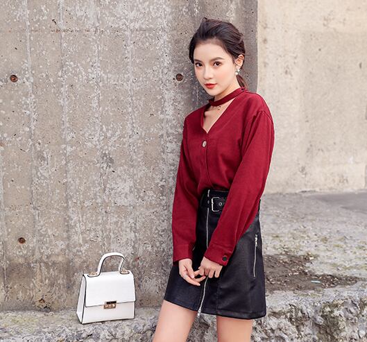 落ち着いたカラーが大人っぽくセクシーな雰囲気の長袖Vネックシャツです。