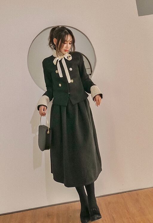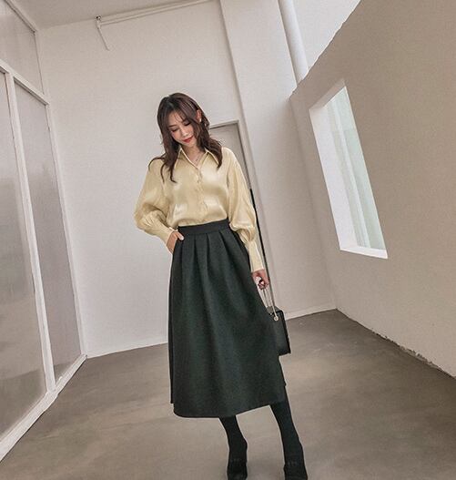 モノトーンカラーで大人っぽく落ち着いた雰囲気の、膝下丈フレアスカートです。