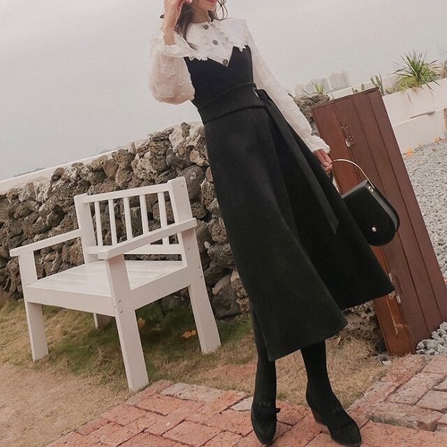 すっきりとした大人顔のきれいめジャンパースカートです◎