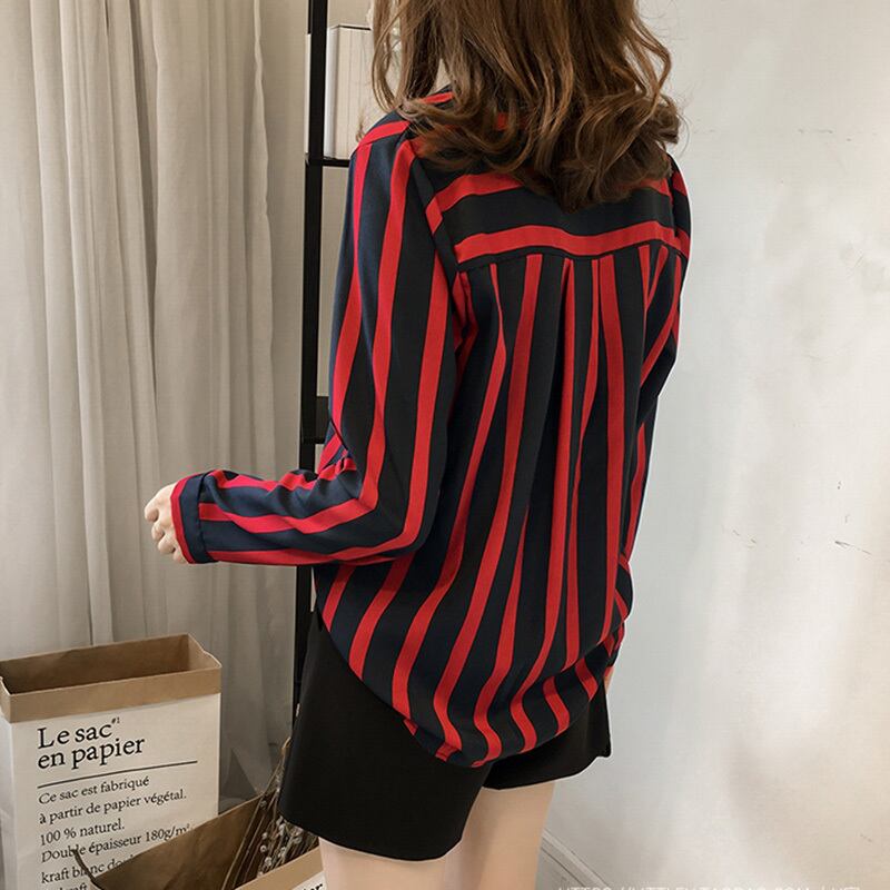 太めのストライプで印象的なシャツです。Vネックなので、首元もすっきり。