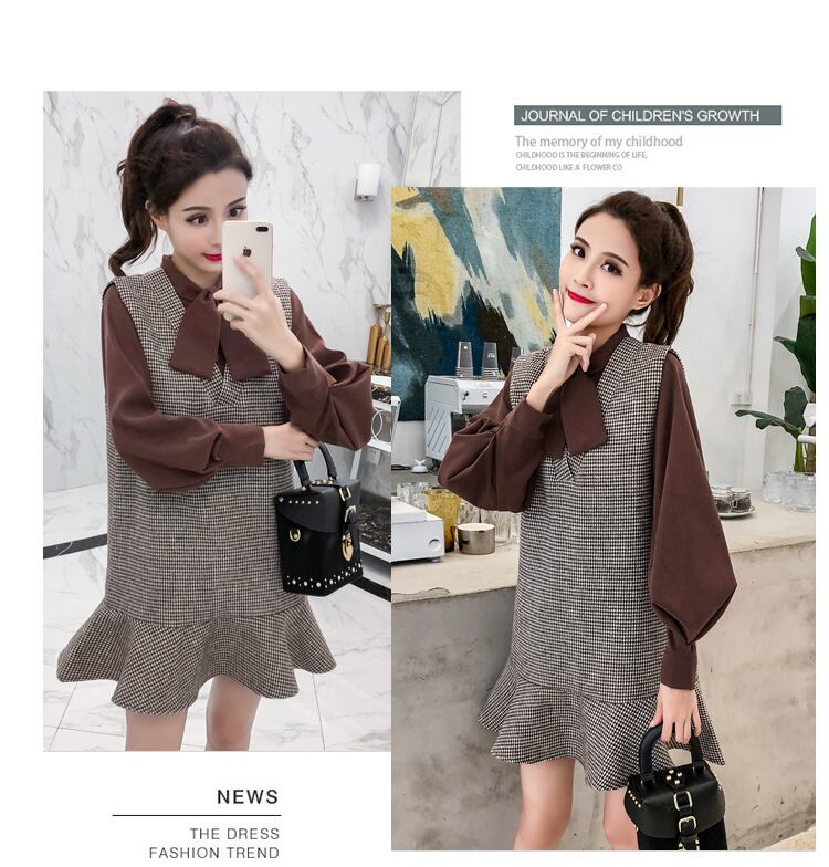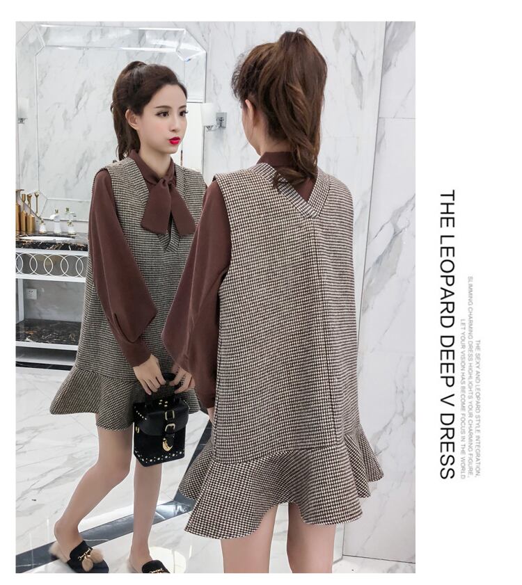 千鳥格子のジャンスカはIラインシルエットで、裾の大ぶりフリルへの切り替えがキュートなポイント。