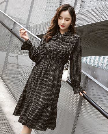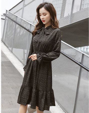 裾フリル&袖シャーリングがフェミニンなボウタイワンピースです。