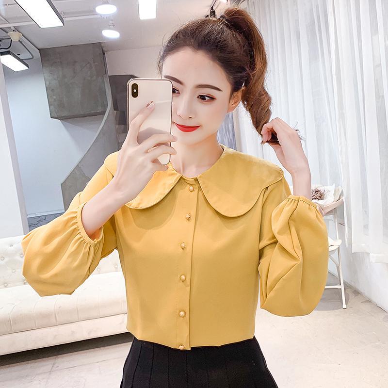 花びらのようにラウンドカットされた襟元がとってもキュートなブラウスです♪