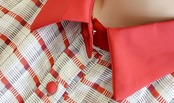 チェック柄と同色の襟と袖のバイカラーデザインでまとまりのあるルックスに。