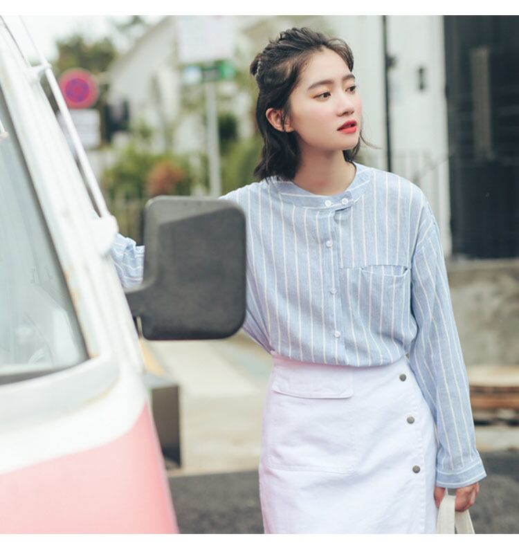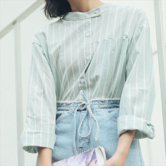 シンプルなストライプ柄がトレンドライクな長袖シャツのご紹介です。