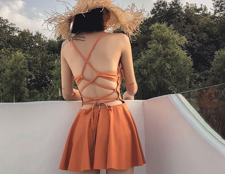 細めストラップとバッククロスディテールがセクシーさをアピール出来ちゃう水着♡