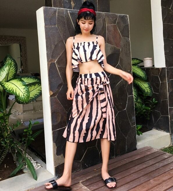 気になるヒップ~太もも周りがカバー出来るスカート付きで、ビーチやリゾートなどで大活躍してくれる予感☆