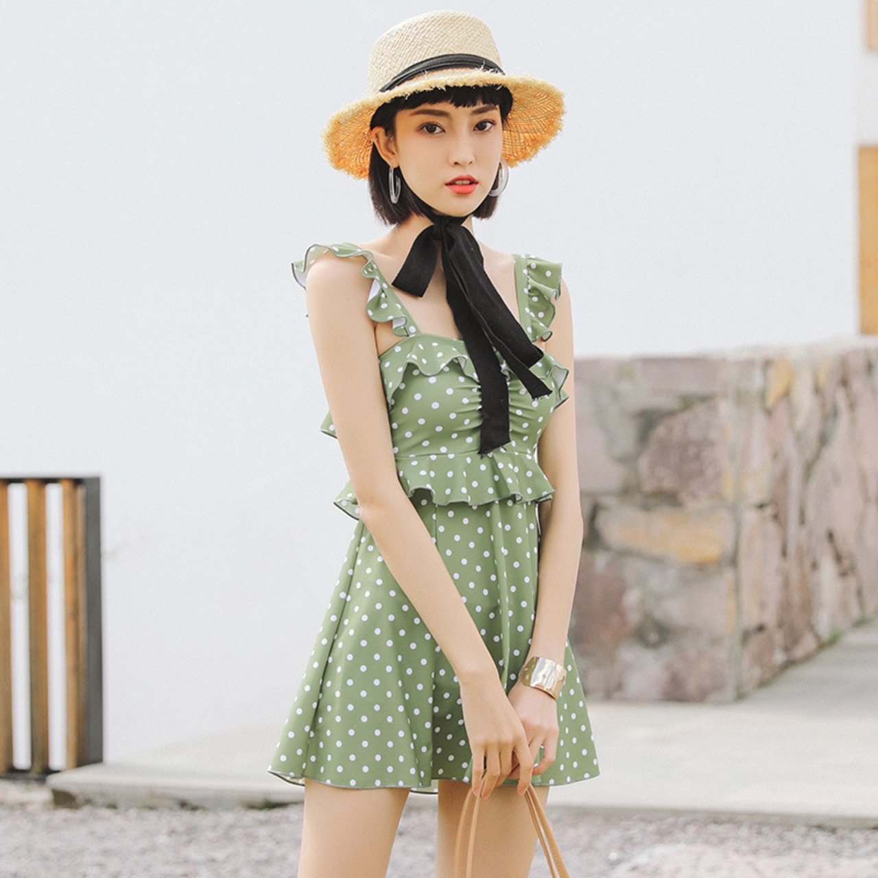 まるでお洋服のようなデザインで、1枚着で決まるワンピースタイプの水着です◎