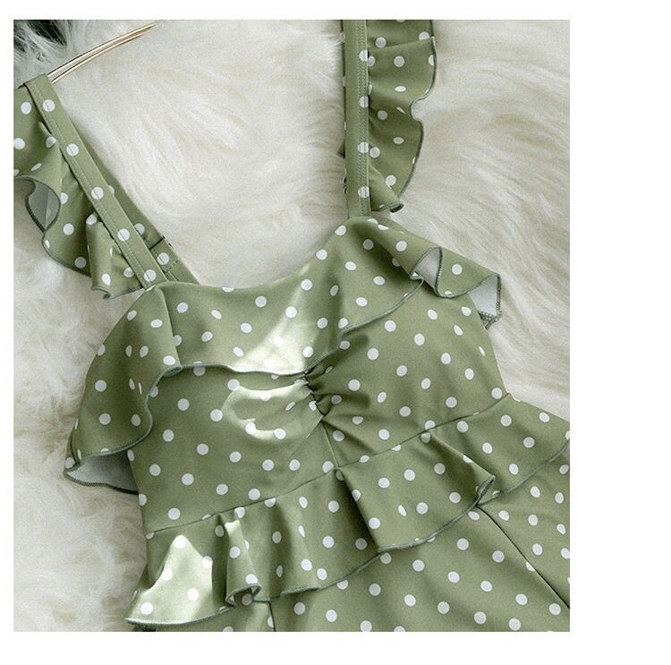 ガーリーなドット柄とフリルデザインが女の子らしさ満点♡