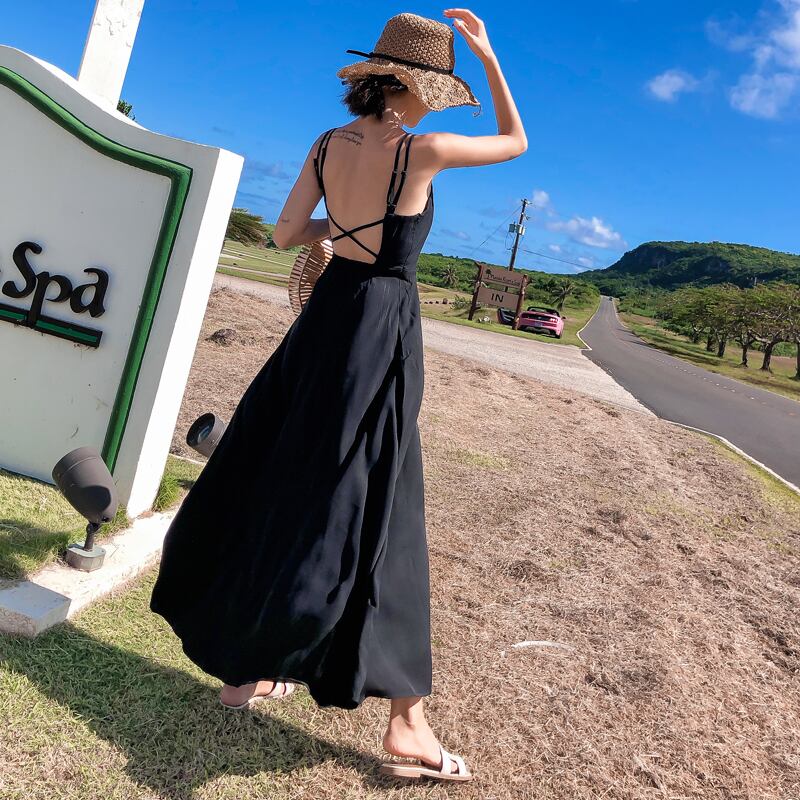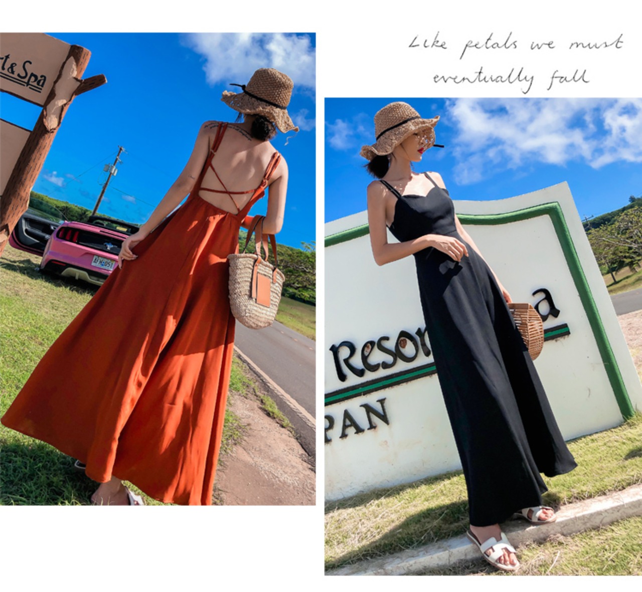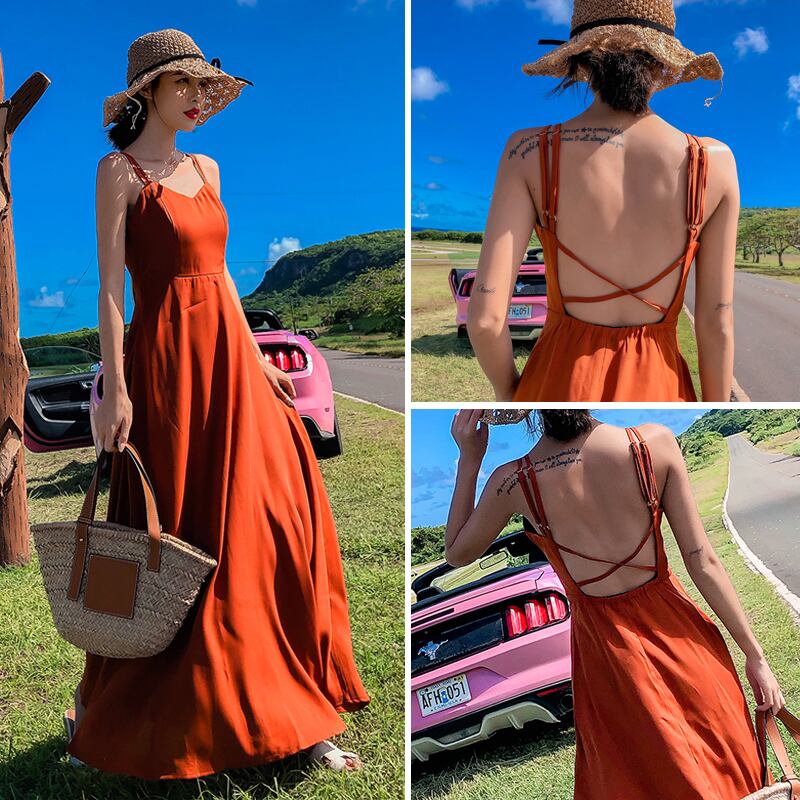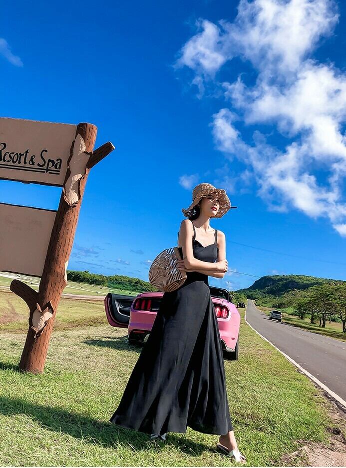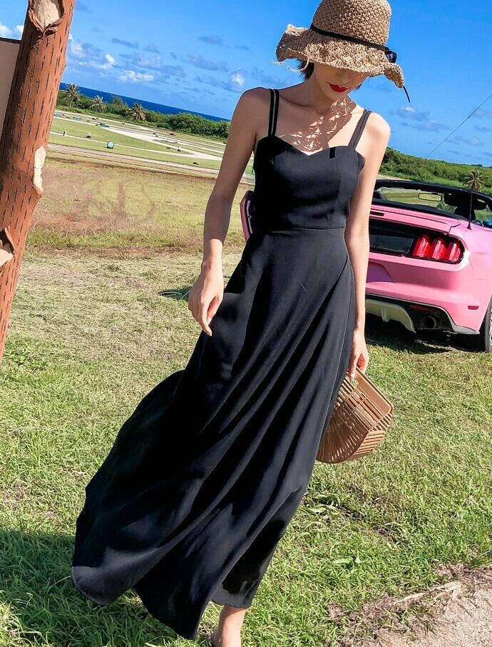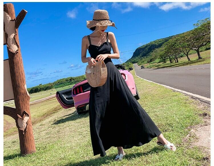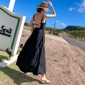 リゾートにぴったりのワンカラーで上品なキャミストラップのマキシワンピース。サイズも3サイズでストラップが調節可能なのでぴったりサイズで着てもらえるドレスです。一枚でもTシャツなどを重ね着しても使える。楽ちんでエレガント♡