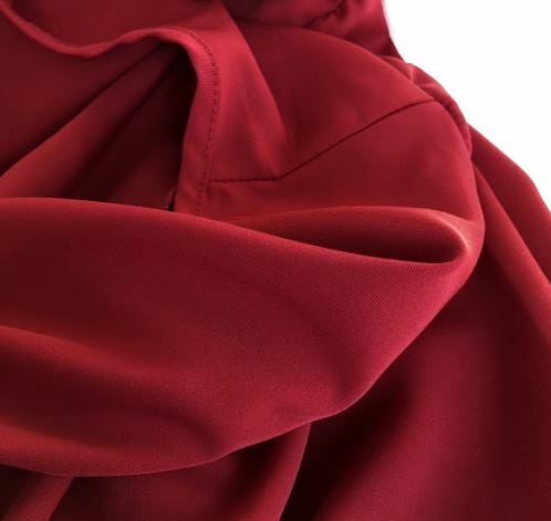 深みのあるレッドに大きく開いたVネックが大人の雰囲気漂う長袖ブラウスです。