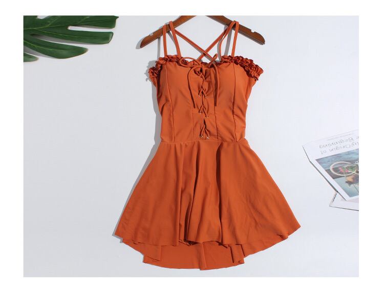 フリル&レースアップ&フレアスカートがフェミニンさたっぷりのワンピース水着です。