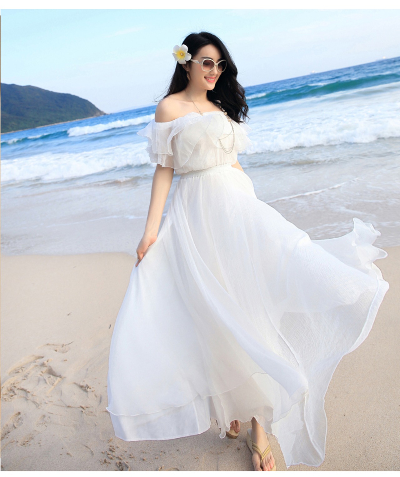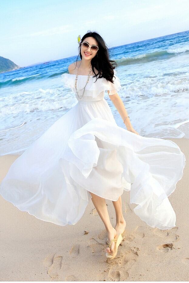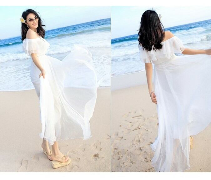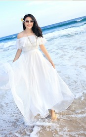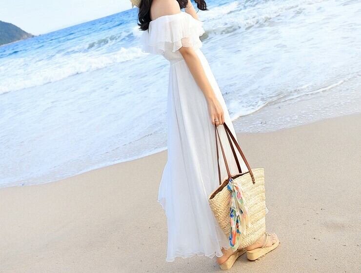 透け感&オフショルダーのふんわりシフォンワンピース。可愛い大人ティアードマキシ丈。