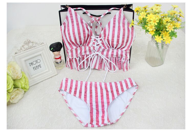 ホルターネックでセクシーさもストライプで爽やかさもでるので洋服の感覚で着られる水着です。